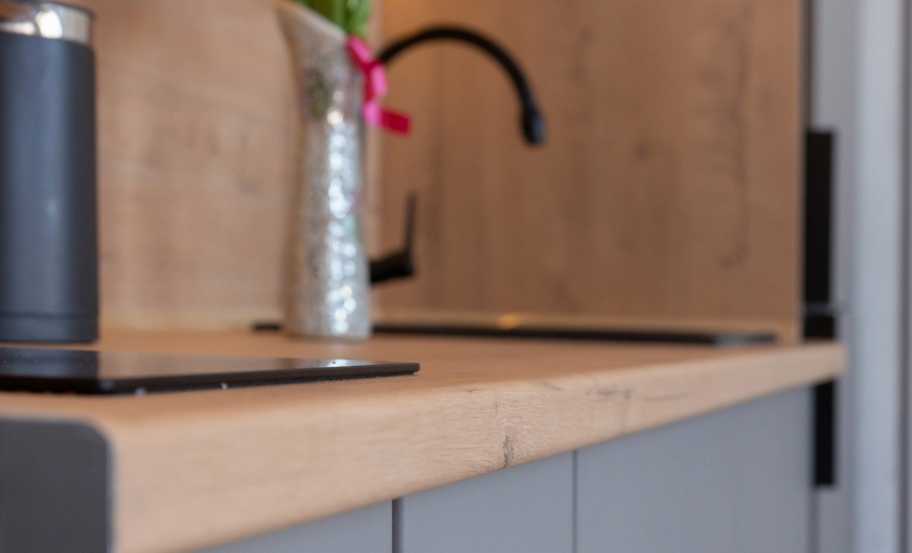 Кухонная столешница играет ключевую роль в кухне, поскольку она представляет собой главную рабочую зону. Ее поверхность подвергается воздействию жиров, влаги и перепадов температур, и поэтому качество материала важно. Наши столешницы изготавливаются из ЛДСП (ламинированной древесно-стружечной плиты) толщиной до 60 мм. Мы уделяем особое внимание долговечности и надежности, поэтому стыки и швы столешниц обрабатываются герметиком, а поверхность покрывается акриловыми смолами, обеспечивающими дополнительную защиту от истирания и внешних воздействий.