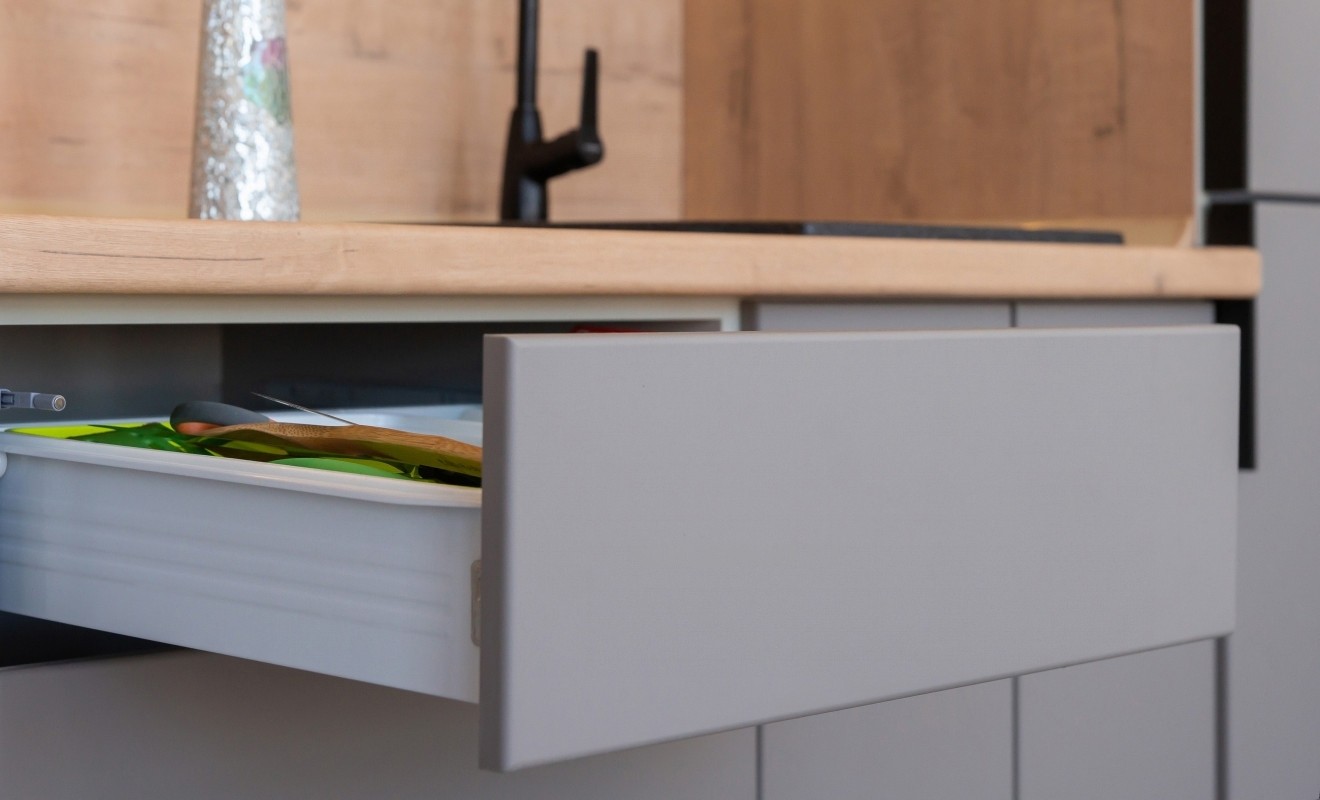 Кухонная фурнитура представляет собой элементы, такие как ручки, петли, ножки и выдвижные механизмы, которые значительно облегчают повседневную жизнь хозяек. Стоимость комплектующих для кухонной фурнитуры может достигать 25% от общей стоимости гарнитура. Мы всегда используем надежные компоненты высокого качества. Подбор необходимых элементов осуществляется с учетом ваших предпочтений, и включение доводчиков входит в стандартное оснащение.