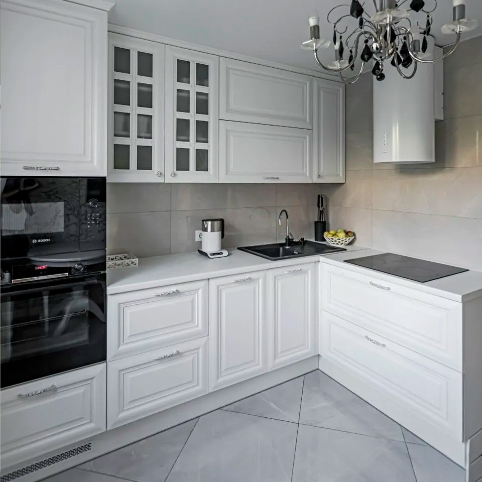 Предлагаем вам высококачественные фасады, изготовленные из МДФ и покрытые прочной ПВХ-пленкой. Фасады из МДФ отличаются практичностью и удобством по сравнению с фасадами из ДСП. Они не требуют дополнительных мер по защите и могут имитировать текстуру ценных пород дерева или даже камня. Пленка, применяемая для покрытия МДФ, обладает высокой устойчивостью к царапинам и легко моется, обеспечивая долговечность и стиль вашей кухни.